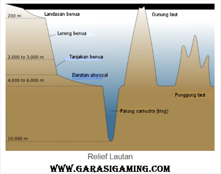 Relief lautan juga memiliki berbagai macam bentuk. Total ada 9 bentuk relief lautan.